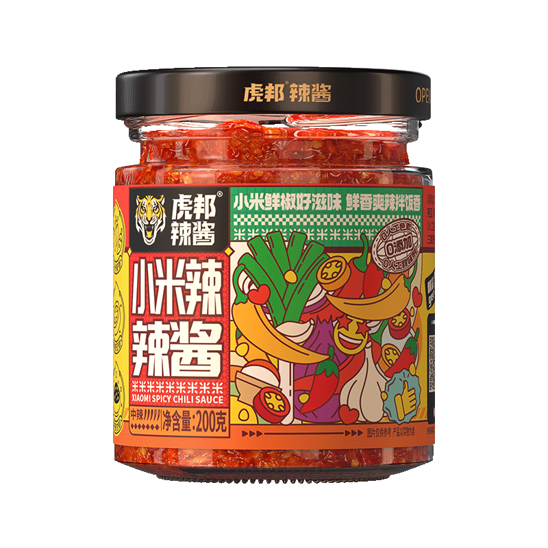 國內新派辣椒醬品牌?;罾贬u主張新派食辣,2017年,虎邦辣醬聯(lián)合各大外賣(mài)平臺主打50g外賣(mài)統—標配裝,—餐—盒,深受消費者的青睞美食,是辣醬中的“網(wǎng)紅”。